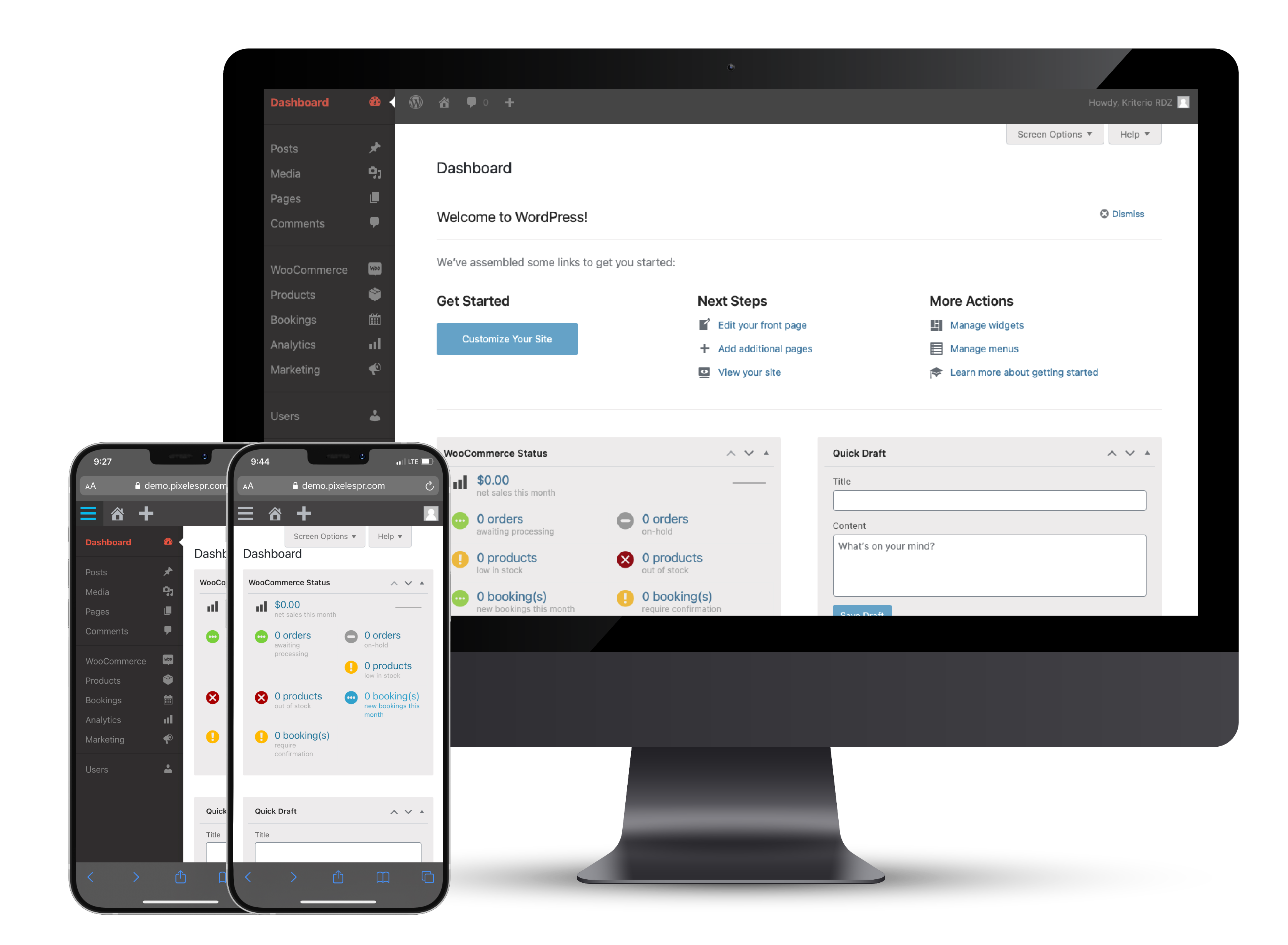 El panel de control de WordPress nos permite administrar la tienda y hacer cambios visuales en el website fácilmente.